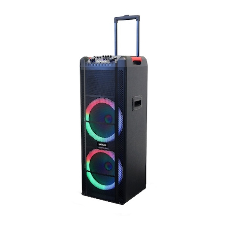 Преносимата тонколона Sogo ALT-SS-8790 е висококачествен продукт, предназначен за максимално аудио удоволствие. Тази мощна тонколона с мощност 1000W и батерия 7000mAh предлага различни функции като Bluetooth, радио/MP3, връзка за китара/микрофон, USB/SD порт и запис на глас. Тя също така предлага настройки за ехо, бас и високи честоти, които ви позволяват да персонализирате звука според вашите предпочитания. Тонколоната има стилен черен дизайн, който ще се впише във всякаква среда. Тя е мобилна и водоустойчива, което я прави идеална за използване на открито. Функциите включват хендсфри, еквалайзер, караоке, записване, USB зареждане, LED светлина, MP3 плейър, дистанционно, влагоустойчив и power bank. Тонколоната се свързва чрез Bluetooth, USB, четец за карти и AUX и може да се свърже до две устройства едновременно. Тя е захранвана от акумулатор с автономия до 5 часа и максимална дистанция 10 м. Тонколоната е с размери 136 x 34.5 x 104 см и тежи 16.5 кг. Тя предлага качествен звук с чувствителност 90 dB. В комплекта се включва дистанционно управление, жичен микрофон и адаптер за зареждане.